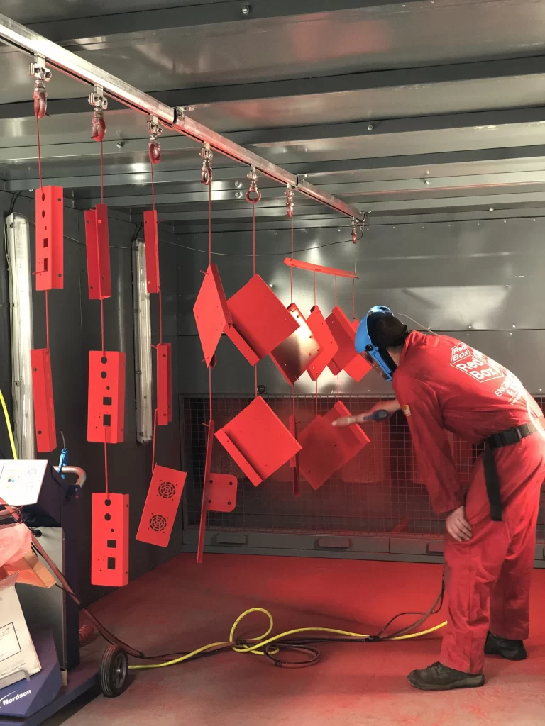 هنگامی که از انواع رنگ پودری استفاده میشود تفنگ های پاشش آنها تحت ولتاژ بسیار بالا پودر رنگ ها را باردار کرده اند برای مثال میتوان گفت بار منفی و رنگ را روی فلز هایی که باردار شده اند با بار های مثبت پاشیده میشنود و دمای رنگ ها به بالای ۱۸۰ درجه میرسد تا این ذوب ها بسیار سخت انجام شود و پس از اینکه سرد میشوند عایقی بسیار مقاوم آنها مورد نظر قرار گیرد و با کیفیت بالایی به دست آیند.